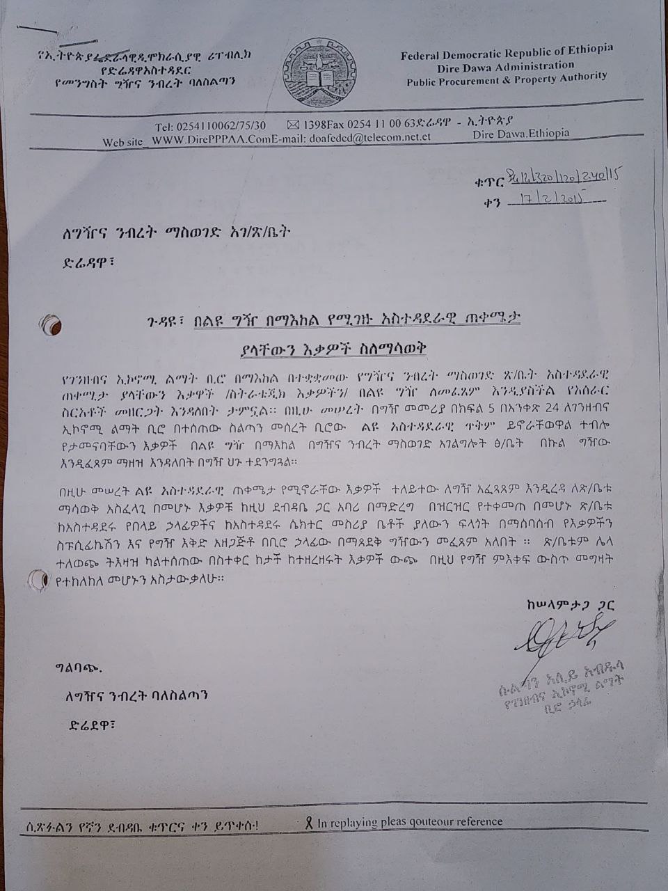 Dire Dawa Administration Public Procurement and Property Authority